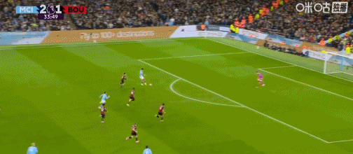 第34分钟,曼城持续威胁进攻,可惜没把握住机会